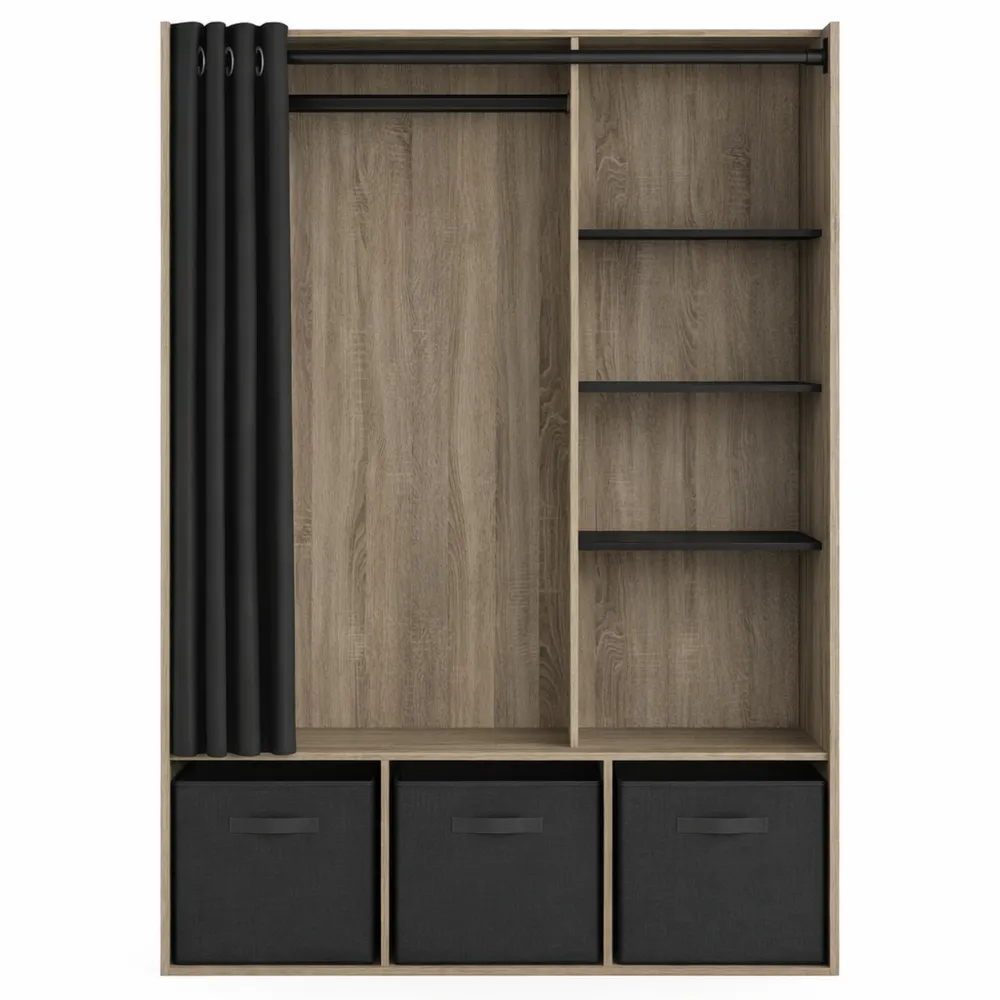 Idéale pour organiser vêtements et objets personnels, cette armoire associe design moderne et fonctionnalité. Elle contribue à créer un espace de vie confortable, ordonné et agréable.